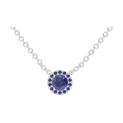 « L'ATELIER » Nº202044Halsketting Witgoud 9 karaat - Blauwe saffier rond 0.3 Karaat - Halo Blauwe saffier - Ketting Gourmet