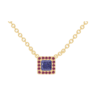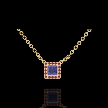 « L'ATELIER » Nº202066Halsketting Geelgoud 9 karaat - Blauwe saffier Prinses 0.3 Karaat - Halo Robijn - Ketting Gourmet