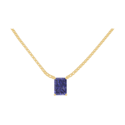 « L'ATELIER » Nº202085Halsketting Geelgoud 18 karaat - Blauwe saffier Rechthoekig 0.3 Karaat - Ketting Venetiaans