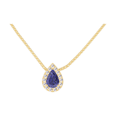 « L'ATELIER » NR. 202158Halsketting Geelgoud 9 karaat - Blauwe saffier Peer 0.3 Karaat - Halo Diamant - Ketting Venetiaans