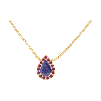 « L'ATELIER » NR. 202166Halsketting Geelgoud 9 karaat - Blauwe saffier Peer 0.3 Karaat - Halo Robijn - Ketting Venetiaans