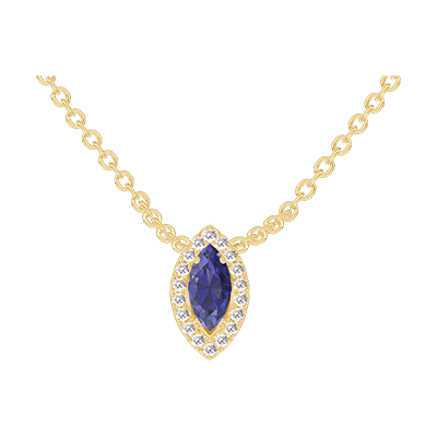 « L'ATELIER » Nº202185Halsketting Geelgoud 18 karaat - Blauwe saffier Markies 0.3 Karaat - Halo Diamant - Ketting Gourmet