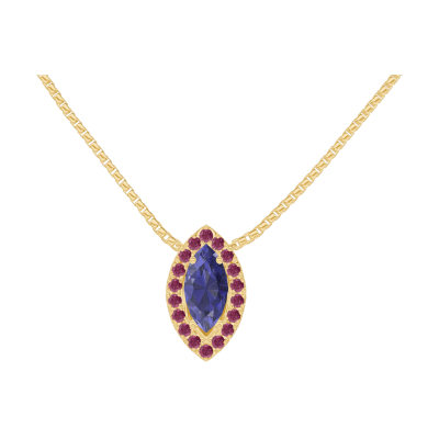 « L'ATELIER » NR. 202198Halsketting Geelgoud 9 karaat - Blauwe saffier Markies 0.3 Karaat - Halo Robijn - Ketting Venetiaans