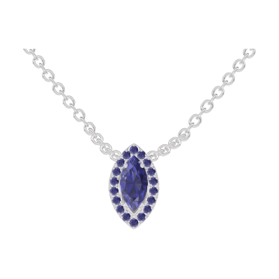 « L'ATELIER » Nº202203Halsketting Witgoud 18 karaat - Blauwe saffier Markies 0.3 Karaat - Halo Blauwe saffier - Ketting Gourmet
