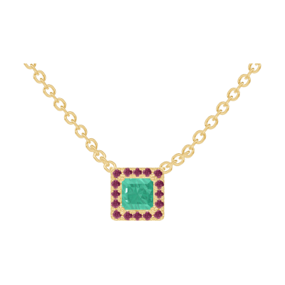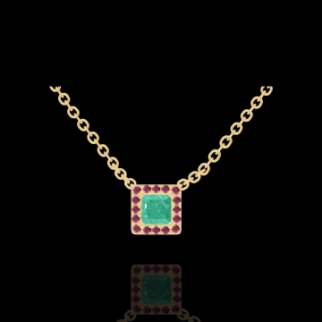 « L'ATELIER » Nº202257Halsketting Geelgoud 18 karaat - Smaragd Prinses 0.3 Karaat - Halo Robijn - Ketting Gourmet