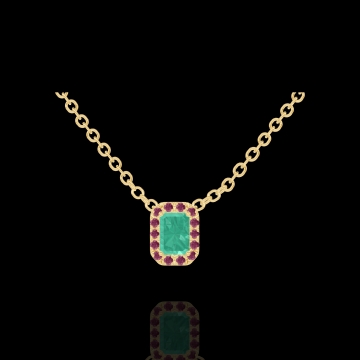 « L'ATELIER » Nº202290Halsketting Geelgoud 9 karaat - Smaragd Rechthoekig 0.3 Karaat - Halo Robijn - Ketting Gourmet