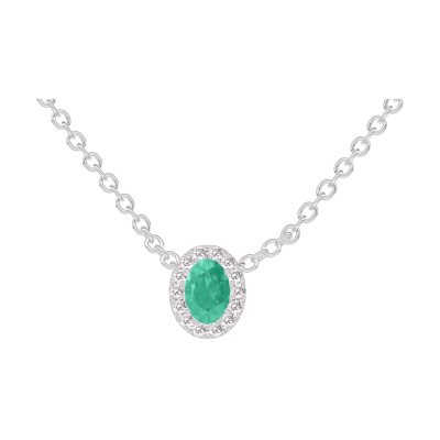 « L'ATELIER » NR. 202316Halsketting Witgoud 9 karaat - Smaragd Ovaal 0.3 Karaat - Halo Diamant - Ketting Gourmet