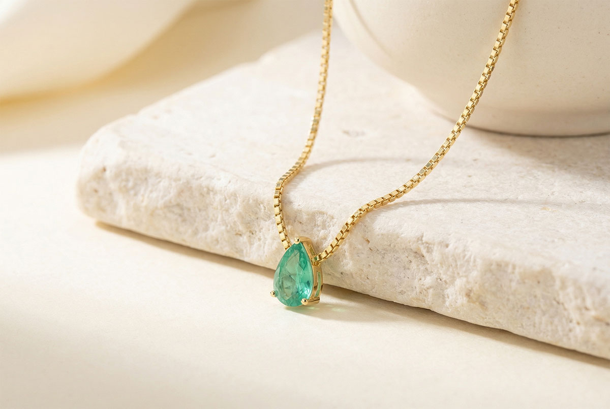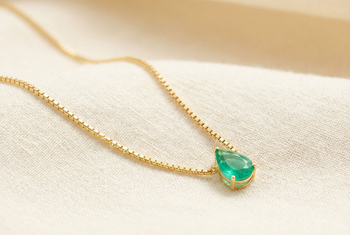 « L'ATELIER » NR. 202342Halsketting Geelgoud 9 karaat - Smaragd Peer 0.3 Karaat - Ketting Venetiaans