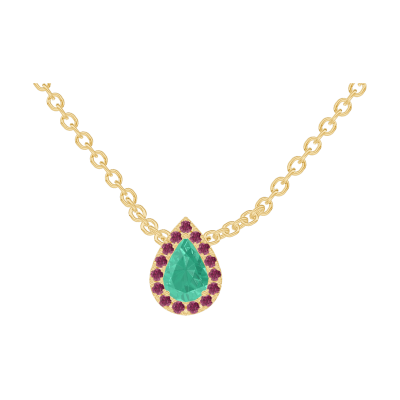 « L'ATELIER » Nº202354Halsketting Geelgoud 9 karaat - Smaragd Peer 0.3 Karaat - Halo Robijn - Ketting Gourmet