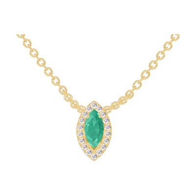 « L'ATELIER » Nº202377Halsketting Geelgoud 18 karaat - Smaragd Markies 0.3 Karaat - Halo Diamant - Ketting Gourmet