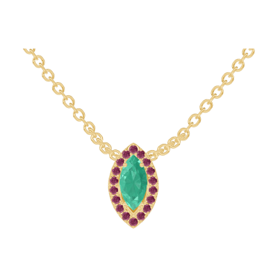 « L'ATELIER » Nº202385Halsketting Geelgoud 18 karaat - Smaragd Markies 0.3 Karaat - Halo Robijn - Ketting Gourmet