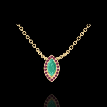 « L'ATELIER » Nº202386Halsketting Geelgoud 9 karaat - Smaragd Markies 0.3 Karaat - Halo Robijn - Ketting Gourmet