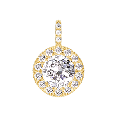 « L'ATELIER » Nº202454Hanger Geelgoud 9 karaat - Diamant rond 0.3 Karaat - Halo Diamant - Setting Diamant - Geen ketting 4