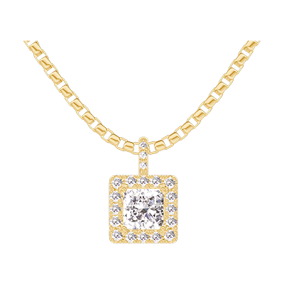 « L'ATELIER » Nº202678Hanger Geelgoud 9 karaat - Diamant Prinses 0.3 Karaat - Halo Diamant - Setting Diamant - Ketting Venetiaans