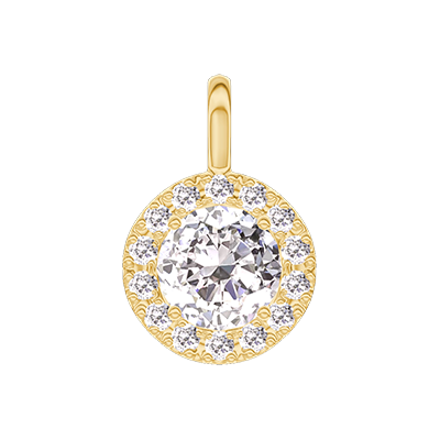 « L'ATELIER » Nº203602Hanger Geelgoud 9 karaat - Laboratorium diamant rond 0.3 Karaat - Halo Laboratorium diamant - Geen ketting 4