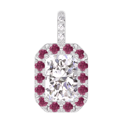« L'ATELIER » Nº204040Hanger Witgoud 9 karaat - Laboratorium diamant Rechthoekig 0.3 Karaat - Halo Robijn - Setting Laboratorium diamant - Geen ketting