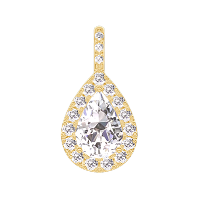 « L'ATELIER » NR. 204374Hanger Geelgoud 9 karaat - Laboratorium diamant Peer 0.3 Karaat - Halo Laboratorium diamant - Setting Laboratorium diamant - Geen ketting