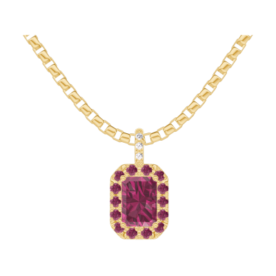 « L'ATELIER » NR. 205222Hanger Geelgoud 9 karaat - Robijn Rechthoekig 0.3 Karaat - Halo Robijn - Setting Diamant - Ketting Venetiaans