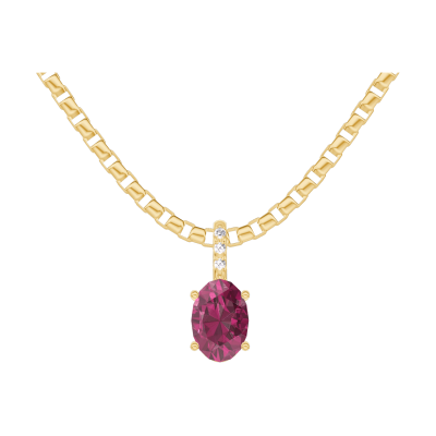« L'ATELIER » Nº205318Hanger Geelgoud 9 karaat - Robijn Ovaal 0.3 Karaat - Setting Diamant - Ketting Venetiaans