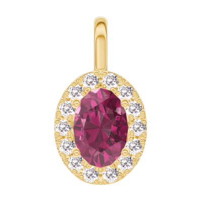 « L'ATELIER » NR. 205329Hanger Geelgoud 18 karaat - Robijn Ovaal 0.3 Karaat - Halo Diamant - Geen ketting