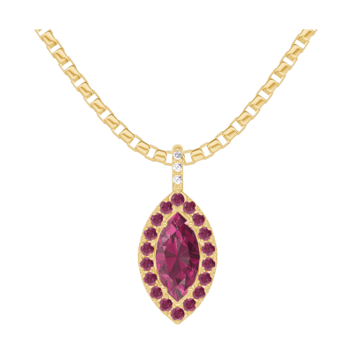 « L'ATELIER » NR. 205797Hanger Geelgoud 18 karaat - Robijn Markies 0.3 Karaat - Halo Robijn - Setting Diamant - Ketting Venetiaans