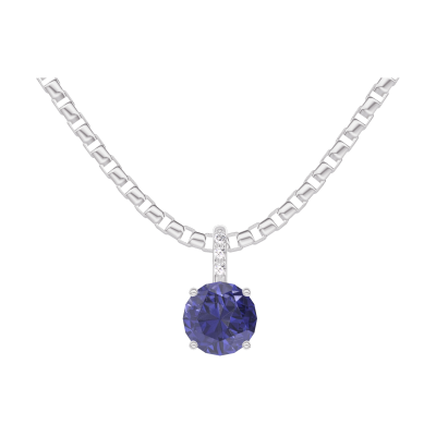 « L'ATELIER » Nº205895Hanger Witgoud 18 karaat - Blauwe saffier rond 0.3 Karaat - Setting Diamant - Ketting Venetiaans 4.6