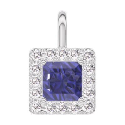 « L'ATELIER » NR. 206100Hanger Witgoud 9 karaat - Blauwe saffier Prinses 0.3 Karaat - Halo Diamant - Geen ketting