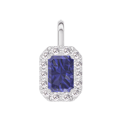 « L'ATELIER » Nº206292Hanger Witgoud 9 karaat - Blauwe saffier Rechthoekig 0.3 Karaat - Halo Diamant - Geen ketting