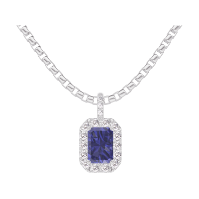 « L'ATELIER » Nº206327Hanger Witgoud 18 karaat - Blauwe saffier Rechthoekig 0.3 Karaat - Halo Diamant - Setting Diamant - Ketting Venetiaans