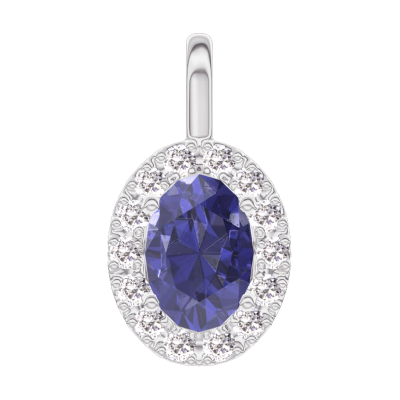 « L'ATELIER » NR. 206483Hanger Witgoud 18 karaat - Blauwe saffier Ovaal 0.3 Karaat - Halo Diamant - Geen ketting