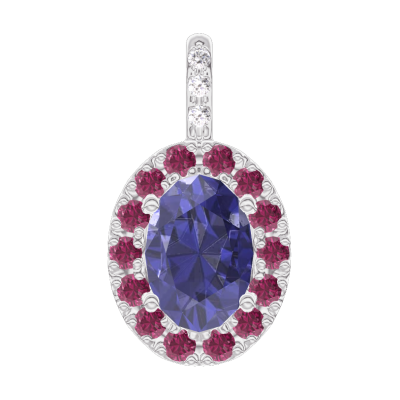 « L'ATELIER » NR. 206536Hanger Witgoud 9 karaat - Blauwe saffier Ovaal 0.3 Karaat - Halo Robijn - Setting Diamant - Geen ketting