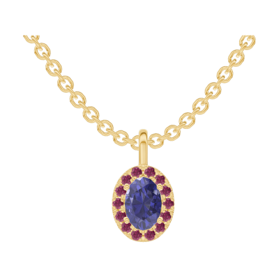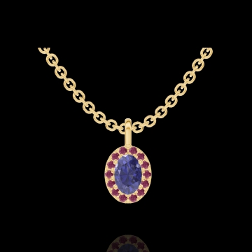 « L'ATELIER » Nº206545Hanger Geelgoud 18 karaat - Blauwe saffier Ovaal 0.3 Karaat - Halo Robijn - Ketting Gourmet