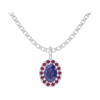 « L'ATELIER » Nº206567Hanger Witgoud 18 karaat - Blauwe saffier Ovaal 0.3 Karaat - Halo Robijn - Setting Diamant - Ketting Venetiaans
