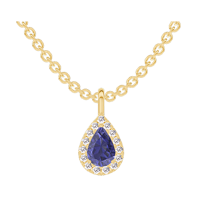 « L'ATELIER » Nº206689Hanger Geelgoud 18 karaat - Blauwe saffier Peer 0.3 Karaat - Halo Diamant - Ketting Gourmet