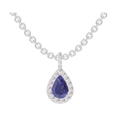 « L'ATELIER » NR. 206696Hanger Witgoud 9 karaat - Blauwe saffier Peer 0.3 Karaat - Halo Diamant - Setting Diamant - Ketting Gourmet