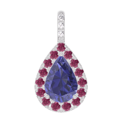 « L'ATELIER » NR. 206728Hanger Witgoud 9 karaat - Blauwe saffier Peer 0.3 Karaat - Halo Robijn - Setting Diamant - Geen ketting