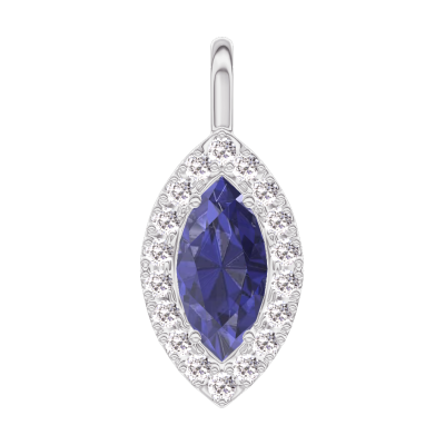 « L'ATELIER » NR. 206867Hanger Witgoud 18 karaat - Blauwe saffier Markies 0.3 Karaat - Halo Diamant - Geen ketting