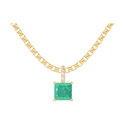 « L'ATELIER » Nº207238Hanger Geelgoud 9 karaat - Smaragd Prinses 0.3 Karaat - Setting Diamant - Ketting Venetiaans