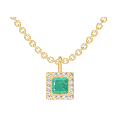 « L'ATELIER » Nº207265Hanger Geelgoud 18 karaat - Smaragd Prinses 0.3 Karaat - Halo Diamant - Ketting Gourmet