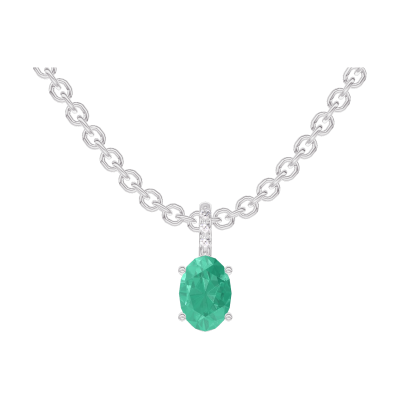 « L'ATELIER » Nº207607Hanger Witgoud 18 karaat - Smaragd Ovaal 0.3 Karaat - Setting Diamant - Ketting Gourmet