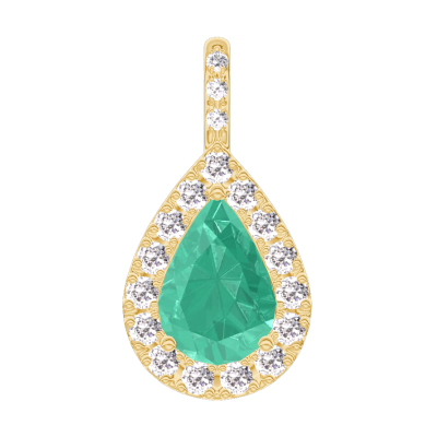 « L'ATELIER » Nº207830Hanger Geelgoud 9 karaat - Smaragd Peer 0.3 Karaat - Halo Diamant - Setting Diamant - Geen ketting