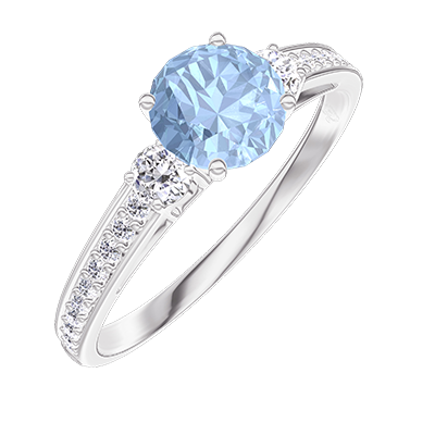 « L'ATELIER » NR. 208500Ring Witgoud 9 karaat - Blauwe topaas rond 0.5 Karaat - Aanleunende edelstenen Diamant - Setting Diamant 4.5