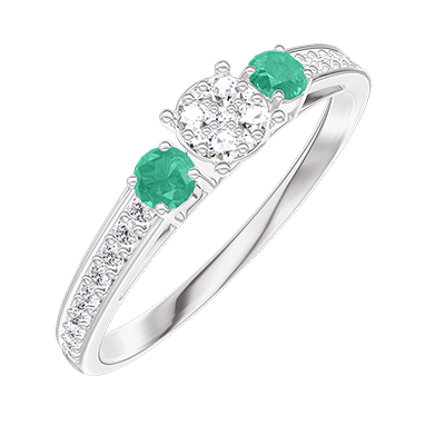 « L'ATELIER » Nº209088Ring Witgoud 9 karaat - Cluster van natuurlijke diamantent rond gelijkwaardig 0.3 - Aanleunende edelstenen Smaragd - Setting Diamant 4.5