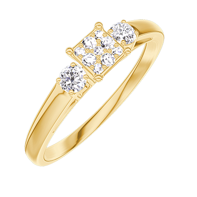 « L'ATELIER » NR. 209122Ring Geelgoud 9 karaat - Cluster van natuurlijke diamantent Prinses gelijkwaardig 0.3 - Aanleunende edelstenen Diamant