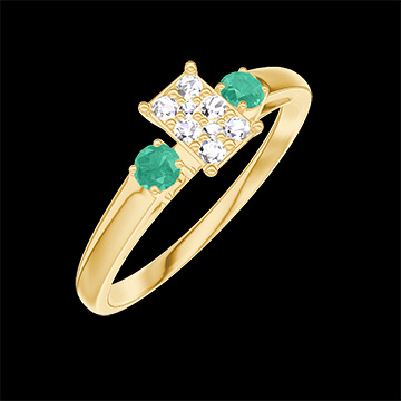 « L'ATELIER » Nº209282Ring Geelgoud 9 karaat - Cluster van natuurlijke diamantent Rechthoekig gelijkwaardig 0.3 - Aanleunende edelstenen Smaragd