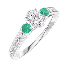 « L'ATELIER » NR. 209388Ring Witgoud 9 karaat - Cluster van natuurlijke diamantent Ovaal gelijkwaardig 0.3 - Aanleunende edelstenen Smaragd - Setting Diamant 5