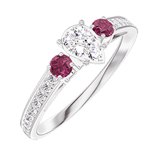 Ring Witgoud 18 karaat - Cluster van natuurlijke diamantent Peer gelijkwaardig 0.3 - Aanleunende edelstenen Robijn - Setting Diamant