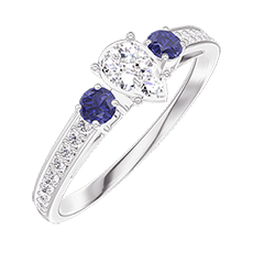 Ring Witgoud 18 karaat - Cluster van natuurlijke diamantent Peer gelijkwaardig 0.3 - Aanleunende edelstenen Blauwe saffier - Setting Diamant