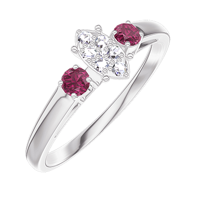 « L'ATELIER » Nº209544Ring Witgoud 9 karaat - Cluster van natuurlijke diamantent Markies gelijkwaardig 0.3 - Aanleunende edelstenen Robijn