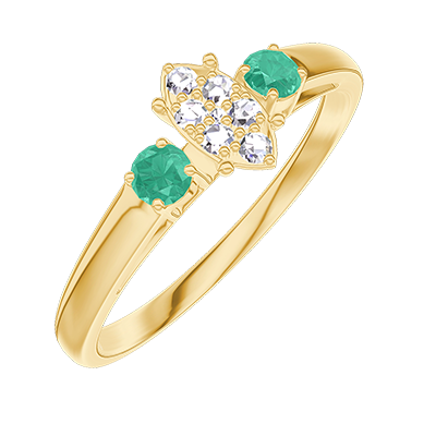 « L'ATELIER » Nº209581Ring Geelgoud 18 karaat - Cluster van natuurlijke diamantent Markies gelijkwaardig 0.3 - Aanleunende edelstenen Smaragd